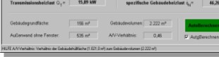 Gebäude- volumen, A / V-Verhältnis, etc.