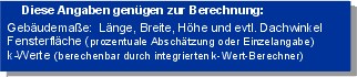 Dach- volumens und der Dach- giebelfläche genügt die Eingabe des Dachwinkels oder der Dachhöhe.