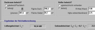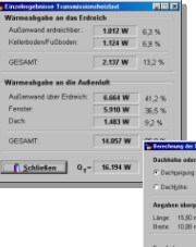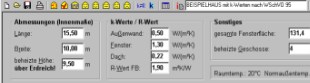 Neben dem Transmissions-, dem Lüftungs- und dem spezifischen Gebäudewärmebedarf erhalten Sie verschiedene Flächenangaben wie z.B. Außenwandfläche ohne Fenster, Gebäudenutzfläche und